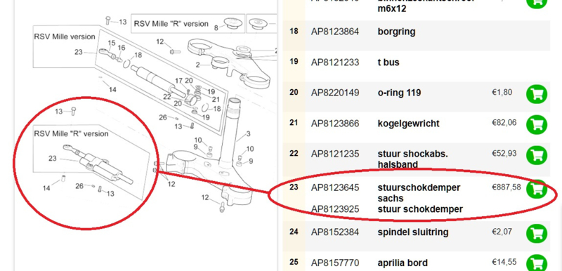 gebruikte Ohlins stuurdemper , gedemonteerd van Aprilia RSV mille