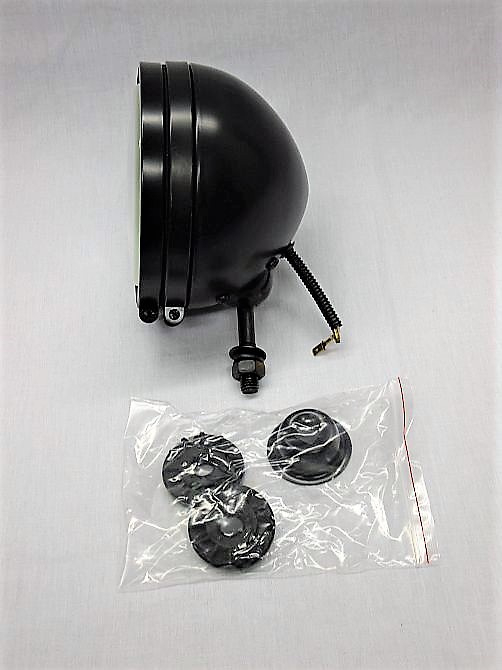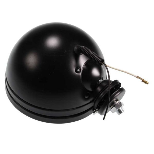 - Zwarte koplamp in metalen behuizing.